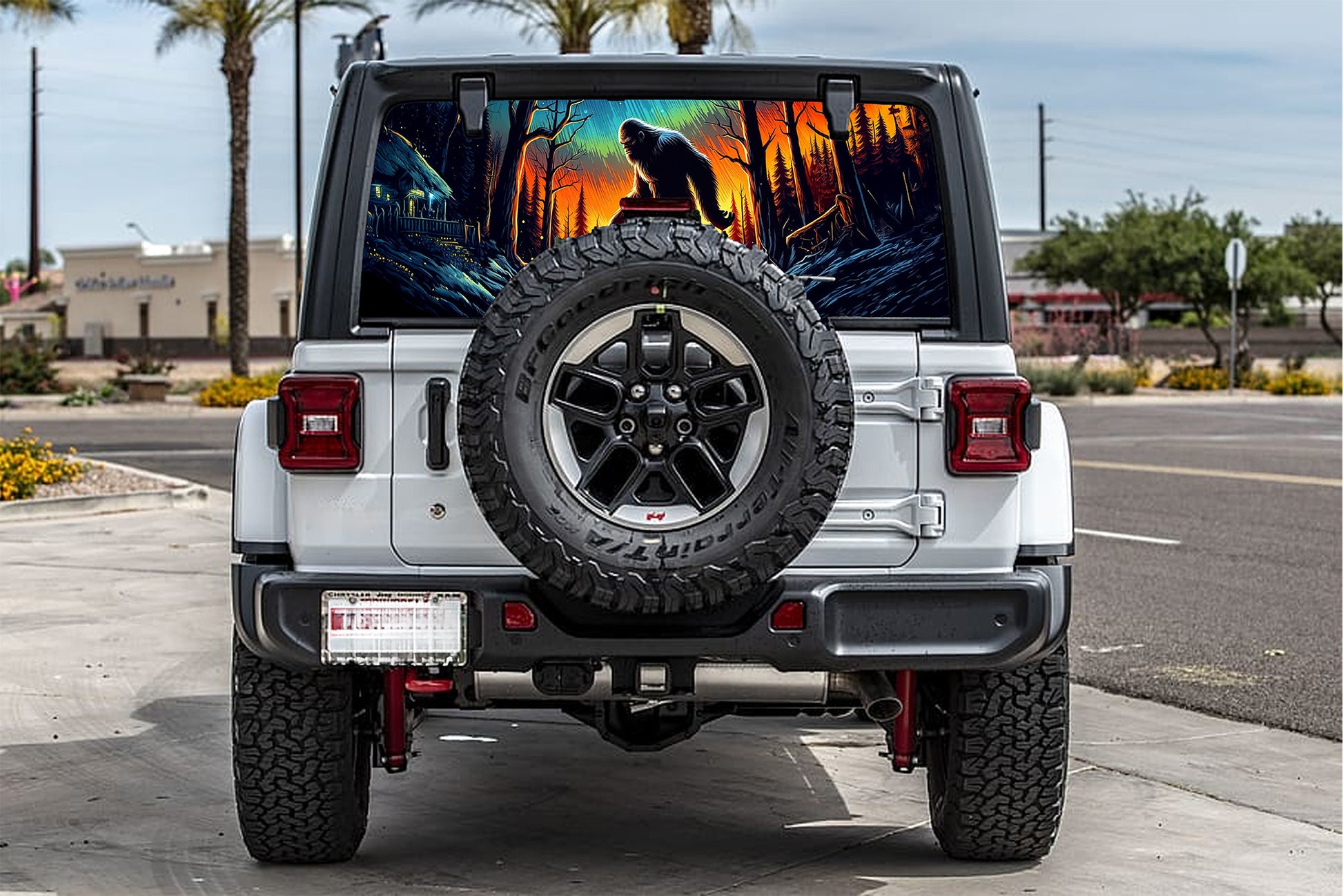 Bigfoot cabin rear window see through graphic.