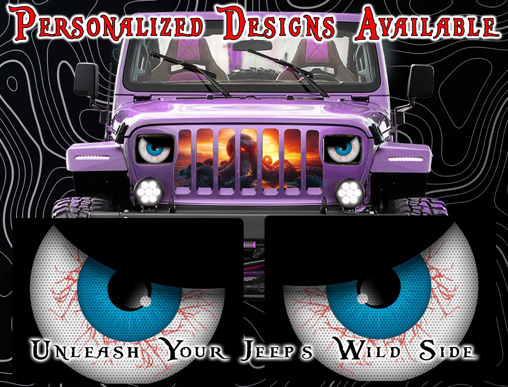 Customize your Jeep with this easy-to-install decal for your headlights. This eye-catching decal is sure to make your vehicle stand out and will last for years. Its high-quality vinyl material ensures a professional look that will make a powerful statement.
