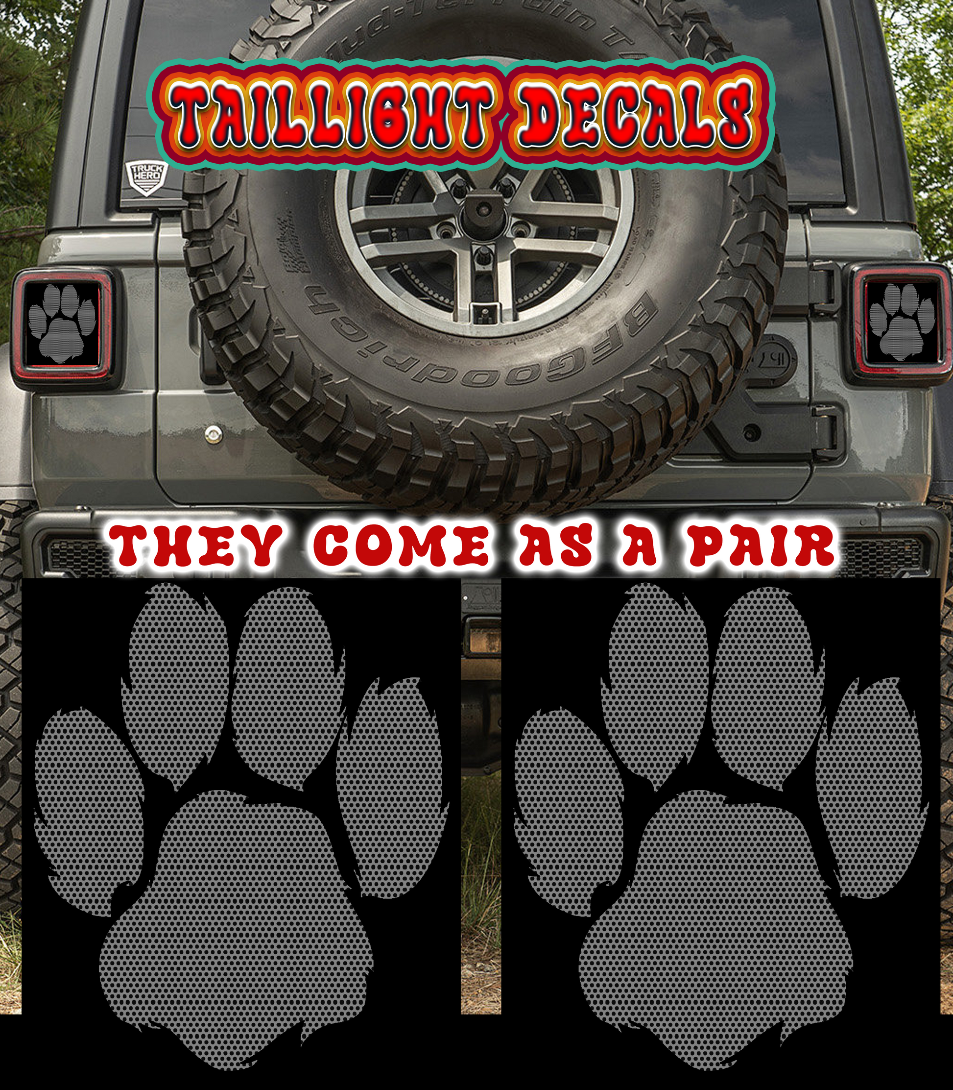 Gray paw print Taillight cover decal