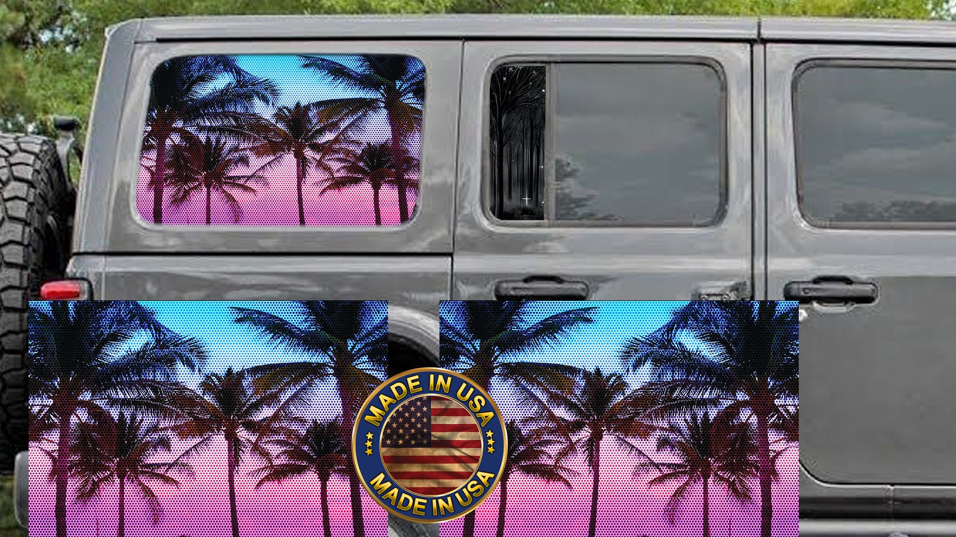 Want your ride to stand out? Let us create a custom window wrap for you! Make your car one-of-a-kind with our rear quarter window see-through graphic.