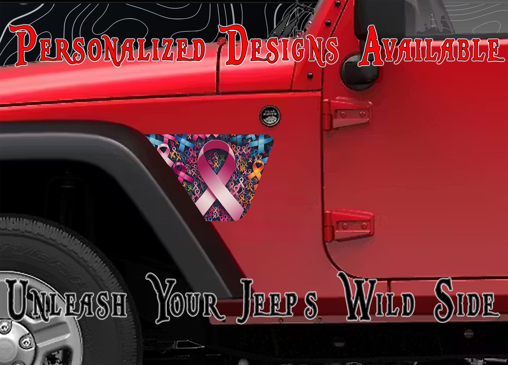Support the fight with a touch of fun using these No One Fights Alone Cancer Awareness JK Fender Decals, designed for 2007-2018 Jeep models. These playful decals spread a powerful message of unity and hope while adding a unique touch to your ride. Easy to apply and durable, they show your strength on every journey.