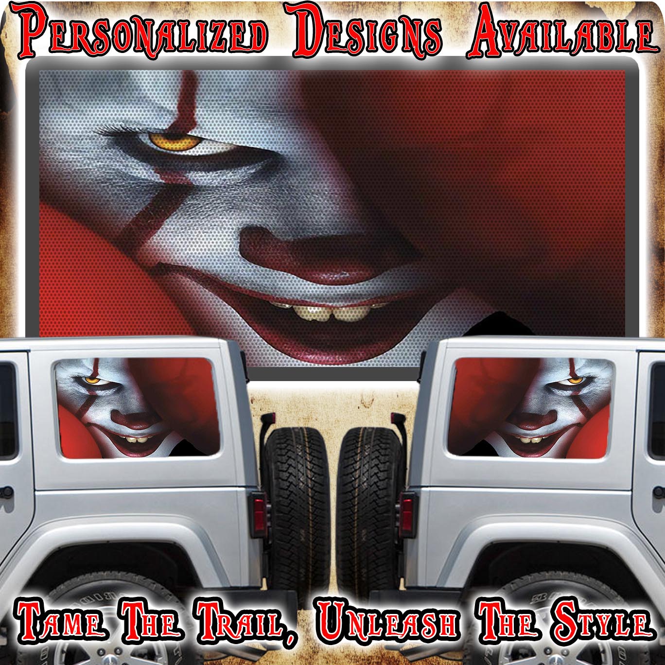 Want your ride to stand out? Let us create a custom window wrap for you! Make your car one-of-a-kind with our rear quarter window see-through graphic.