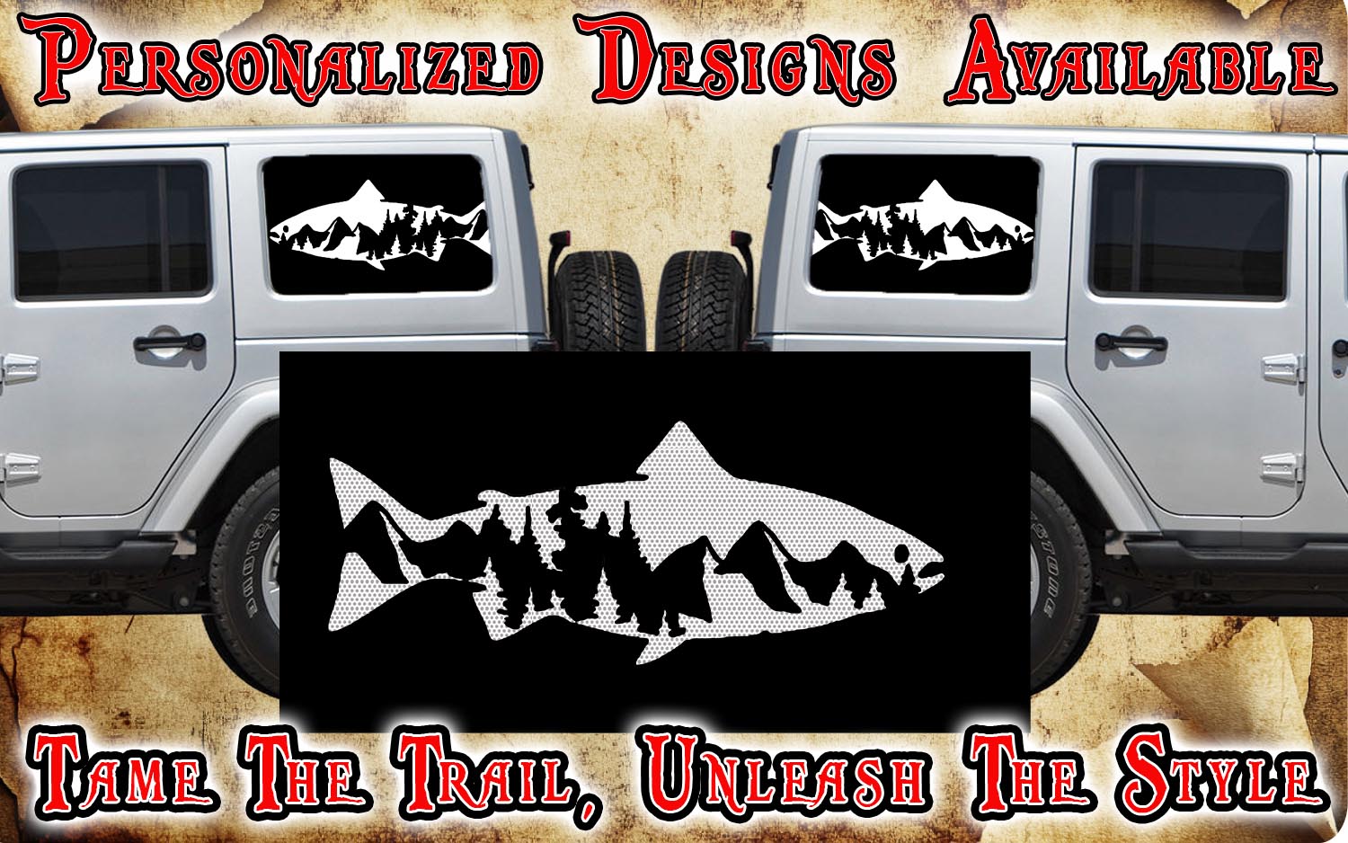 Want your ride to stand out? Let us create a custom window wrap for you! Make your car one-of-a-kind with our rear quarter window see-through graphic.