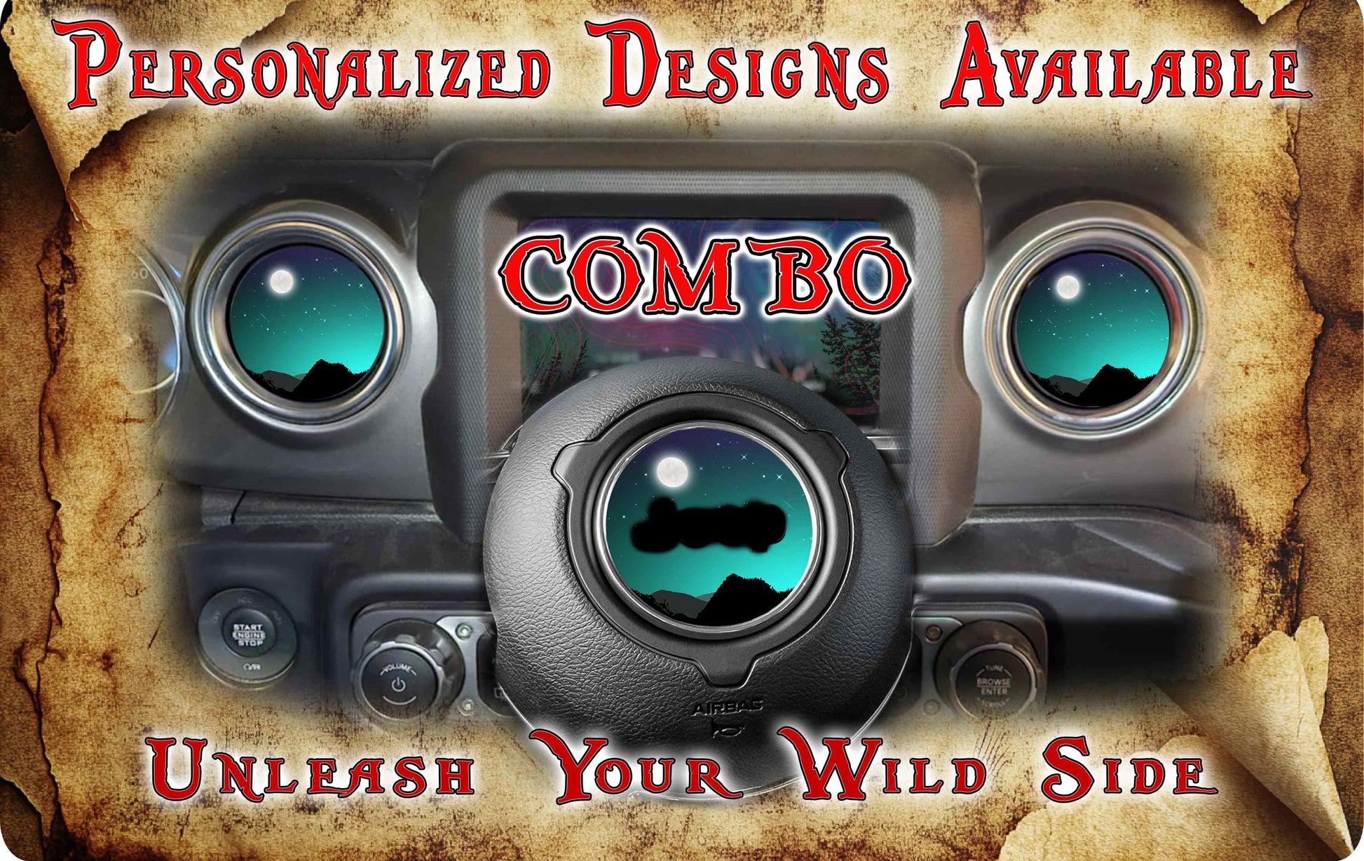 Transform your steering wheel into a starry adventure with the Mountain Night Sky decal! Featuring playful mountain silhouettes under a twinkling night sky, this decal adds a magical, outdoorsy touch to your car’s interior. Easy to apply and perfect for dreamers who love nighttime escapes on the road.