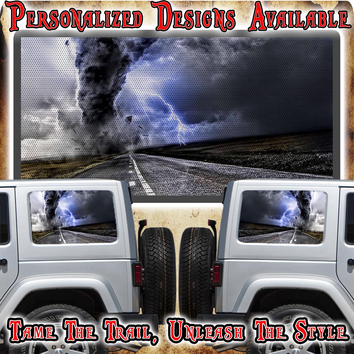 Get ready to make your Jeep stand out from the crowd! Our unique rear window graphic will take your ride to the next level and make a bold statement. Embrace daring design and let us help you unleash your wild side.