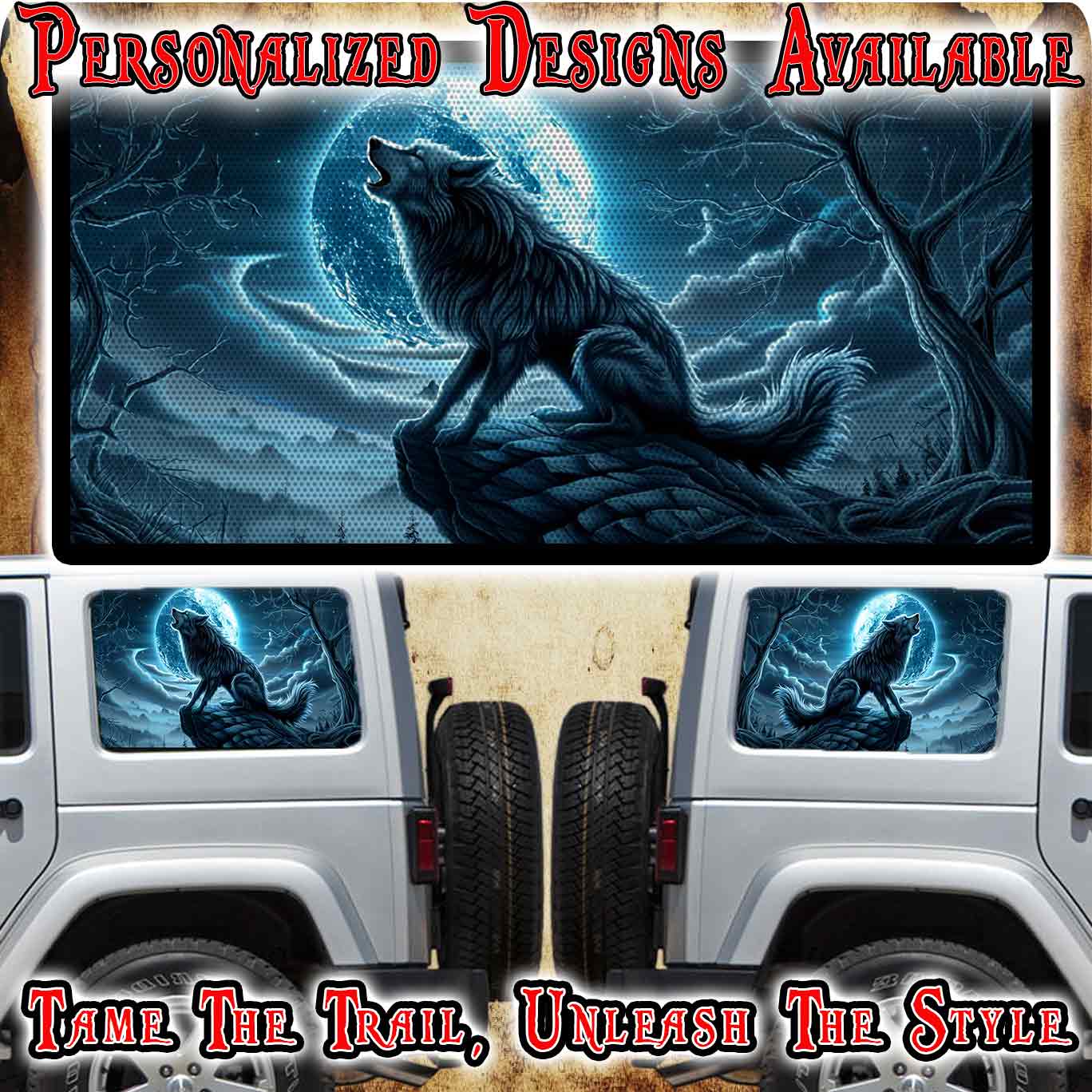Get ready to make your Jeep stand out from the crowd! Our unique rear window graphic will take your ride to the next level and make a bold statement. Embrace daring design and let us help you unleash your wild side.